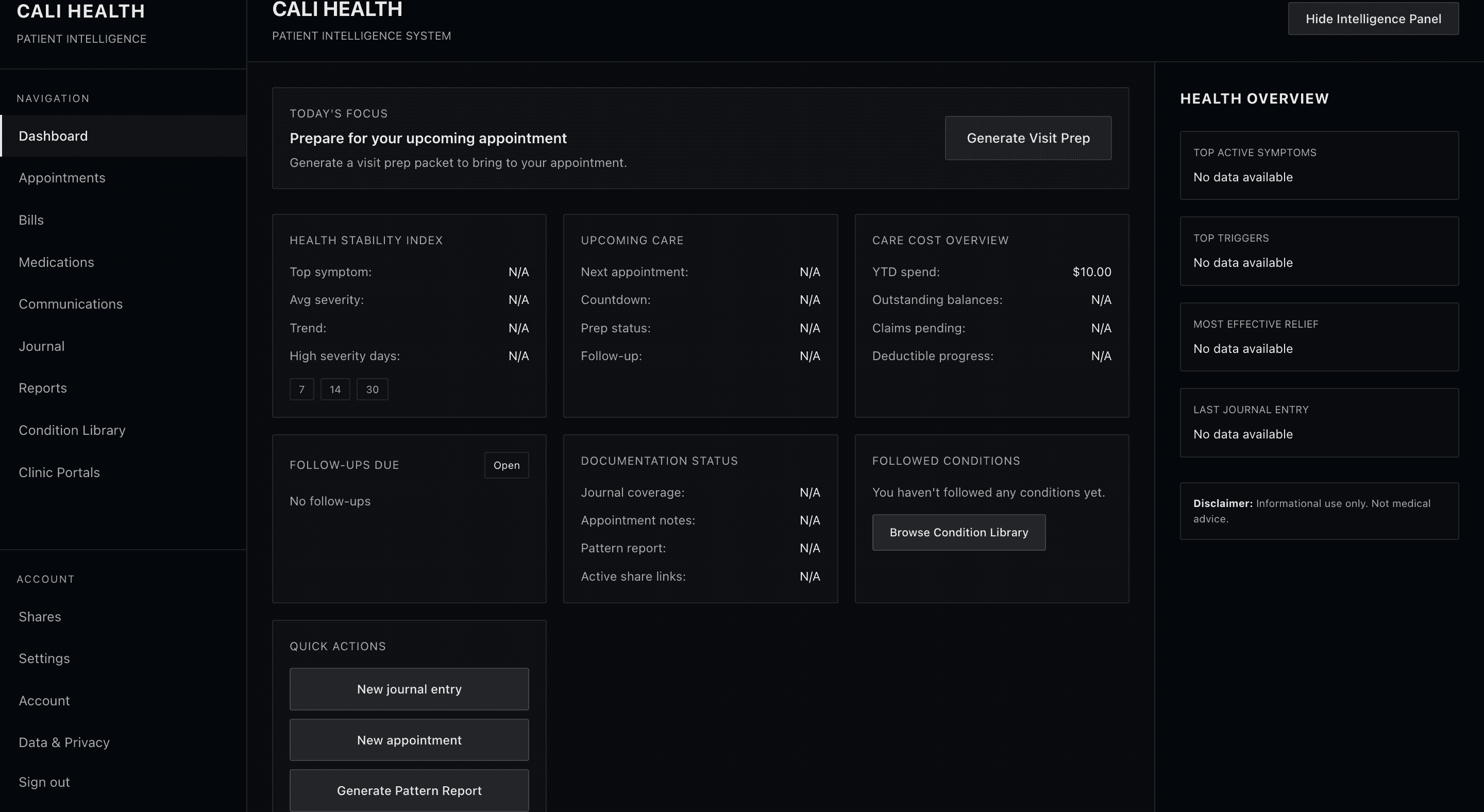 Cali Health converts patient-reported symptoms, medications, and follow-ups into structured reporting windows designed for clinical review.